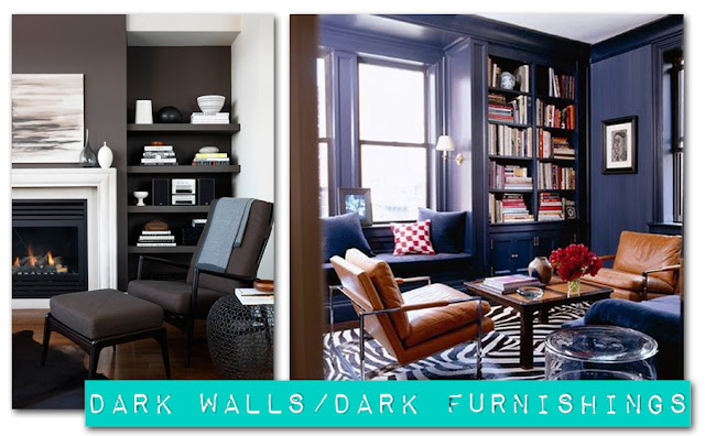 The whole "blend in/stand out" thing isn't something to be ignored; it can work for or against you. Like, say, you've got mostly dark furniture, BUT you don't really like it? Well, pairing it with pale beige walls will make it stand out that much more. But set it against deep charcoal walls and it will blend into the background and you can make your statement with accessories instead of your not-so-favorite furniture finds.